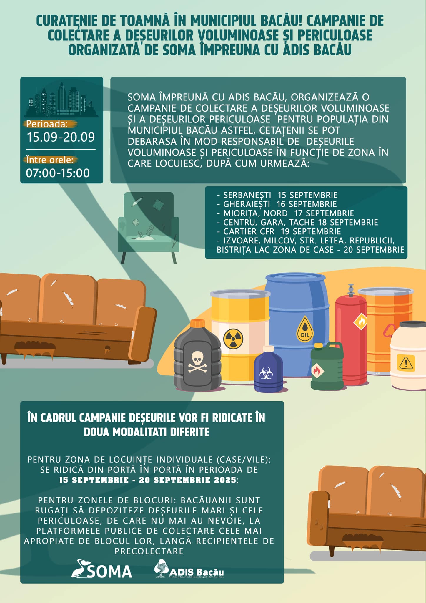 În perioada 29 septembrie – 03 octombrie, ADIS Bacău și SOMA organizează o campanie de colectare a deșeurilor voluminoase și …