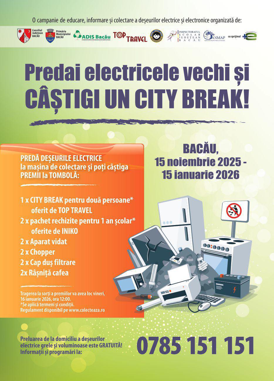 În perioada 15 noiembrie 2025 – 15 ianuarie 2026, Octogreen organizează campania de colectare a deșeurilor electrice și electronice „Predai electricele vechi și câștigi un CITY BREAK!” în parteneriat cu ADIS Bacău, Consiliul Județean Bacău, Municipiul Bacău, Inspectoratul Școlar Județean Bacău și alți parteneri instituționali.